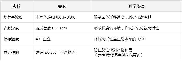 联合石蜡密封:穿刺后覆盖无菌液体石蜡(厚度≥1cm),可使保存期从1年延长至2-3年(如伤寒杆菌保藏案例)。