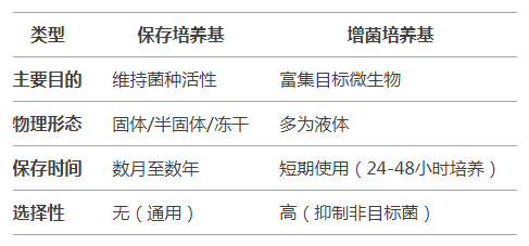 百欧博伟生物:微生物学实验室中,保存培养基和增菌培养基是两类关键工具,分别用于长期维持菌种活力和选择性富集目标微生物。以下是它们的分类、用途及特点: