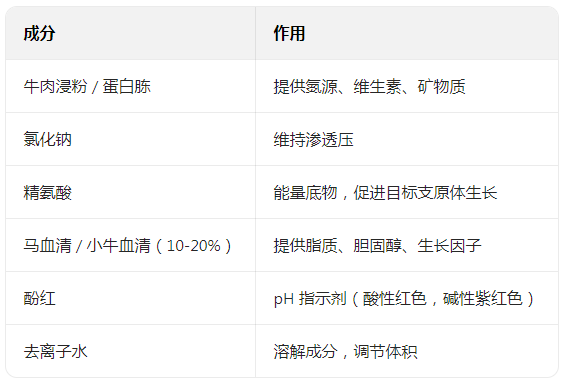 支原体无法合成自身所需的全部营养物质,其生长依赖外界提供的氨基酸、维生素、脂质(如血清中的成分)等。精氨酸支原体肉汤培养基的设计基于以下核心原理: