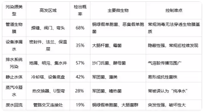 冷凝水——被忽视的纯净伪装:食品生产中蒸汽直接接触产品(如杀菌釜、蒸煮设备)时,其冷凝水必须达到工艺用水标准。但锅炉水处理不当会导致军团菌检出率高达25%,当蒸汽压力波动时,污染蒸汽可逆流进入生产线。