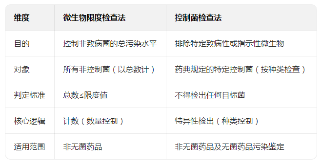 药品微生物限度检查法和控制菌检查法的区别与作用对比!