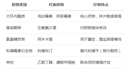 戈登分枝杆菌对传统抗结核药物耐药率高,需联合长程治疗(通常≥12个月):